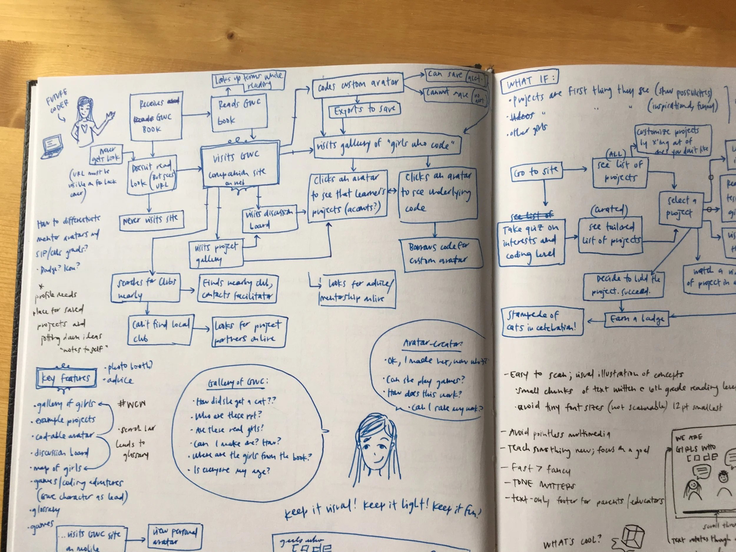 I began by conducting interviews with girls and their parents to understand their interests and personalities, along with a lit review and comparative analysis. I quickly learned that 8-12 is actually a huge range in terms of reading level and computer skills. Based on these conversations, I created three personas and the following set of principles to guide the final concept: